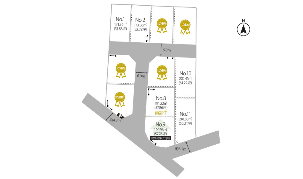 | No.9:(57.84坪)分譲住宅 | 建築予定地 |