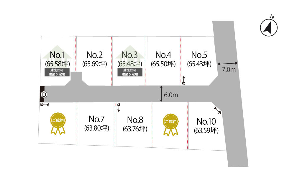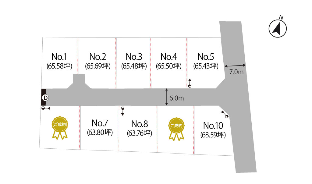 | No.7:210.93㎡(63.80坪) | 販売価格:1,052万円 |