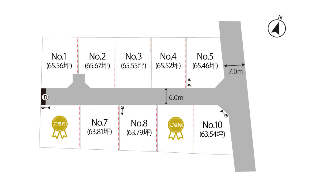 | No.8:210.89㎡(63.79坪) | 販売価格:1,052万円 |