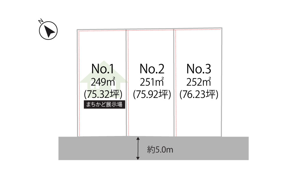 | 土地面積 | 251m²(75.93坪)〜252m²(76.23坪) |