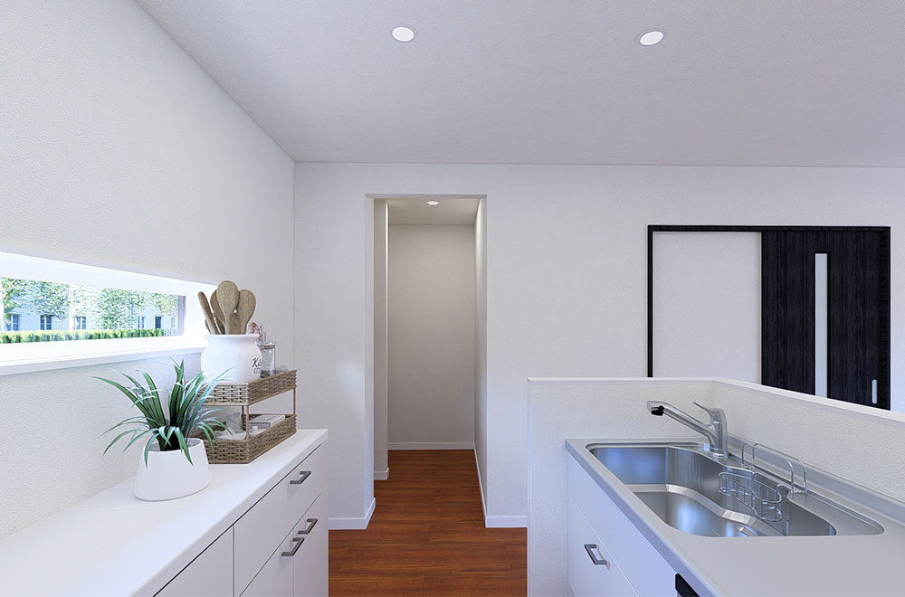 ■パントリーが隣接したシステムキッチンは使い勝手抜群!
